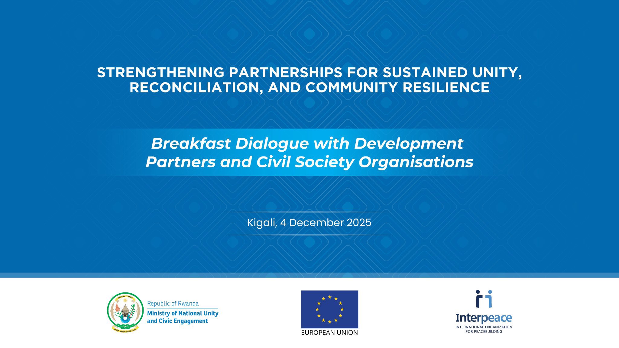 Today, Our Executive director, Odette Mukansoro, has attended a breakfast dialogue with the Ministry of National Unity and Civic Engagement in partnership with Interpeace organization to exchange policy priorities, share perspectives on emerging opportunities, and explore avenues for enhanced collaboration in advancing unity, reconciliation, and community resilience.